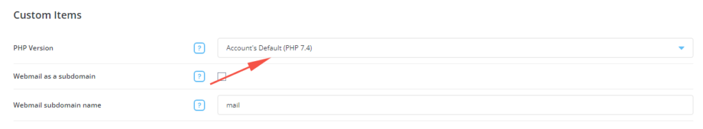 قدم 4: ورود به بخش Custom Items و تغییر نسخه php هاست