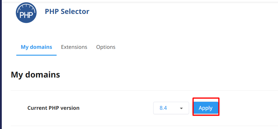 با کلیک روی PHP Version، یک منوی کشویی باز میشه که نسخههای مختلف PHP رو نشان میده. نسخه مورد نظر خودت (مثلاً 7.4 یا 8.0) رو انتخاب کن تا تغییرات جدید اعمال بشه.