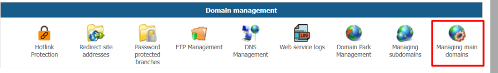 در بخش مدیریت دامین (Domain Management) بر روی مدیریت دامینهای اصلی (Domain Setup) کلیک کن