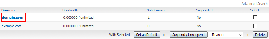 در لیست دامینهای اصلی روی نام دامین مورد نظرت کلیک کن تا صفحه ویرایش تنظیمات دامین نمایش داده بشه.