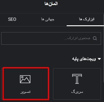- اول از همه، برگه ای که میخای داخلش تولتیپ نشون بدی باز کن با المنتور و یه ویجت تصویر اضافه کن و عکست رو انتخاب کن.