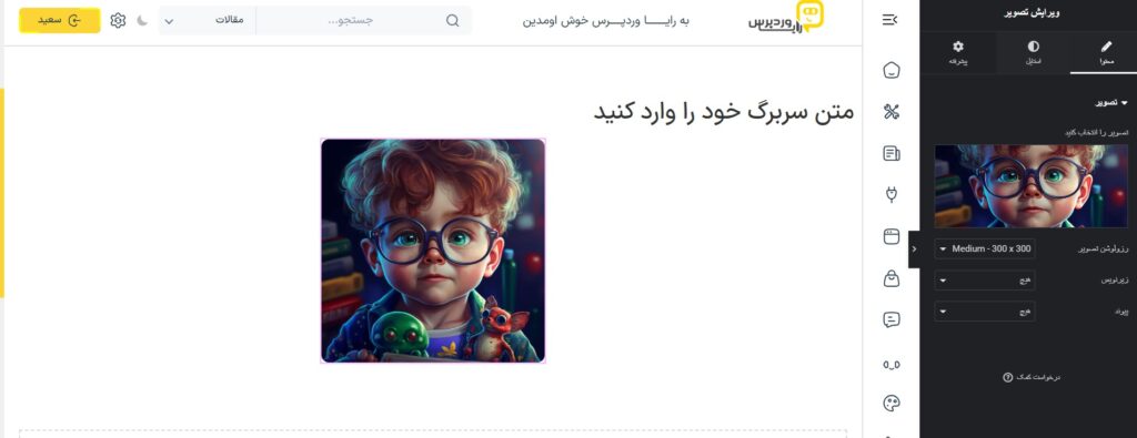 قدم اول: ویجت تصویرت رو اضافه کن و کلاس CSS براش تعریف کن