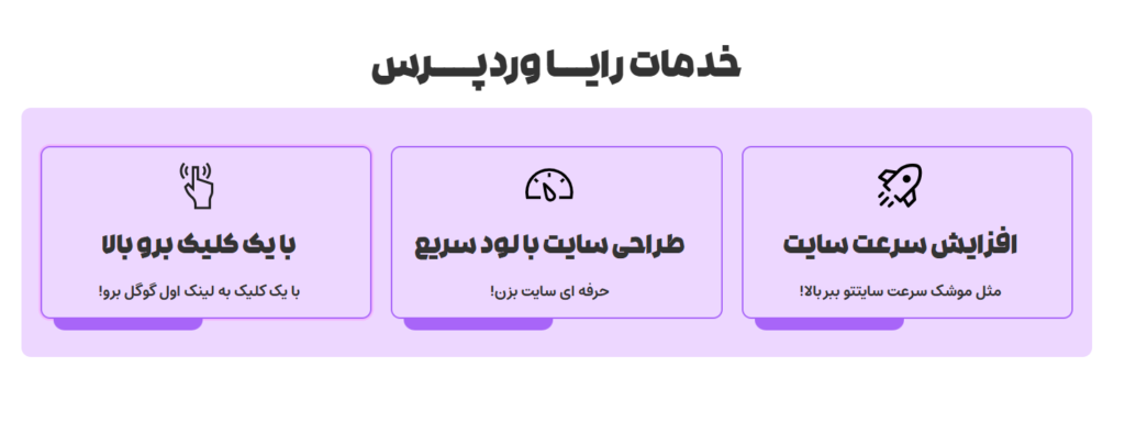 - آیکون: برای هر دستهبندی یک آیکون انتخاب کن که بهخوبی نمایانگر اون خدمات باشه. مثلاً برای “طراحی وب” از آیکون کامپیوتر استفاده کن. 💻