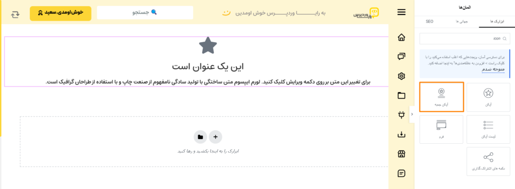 2. اضافه کردن ویجت Icon Box 🖼️ به برگه
