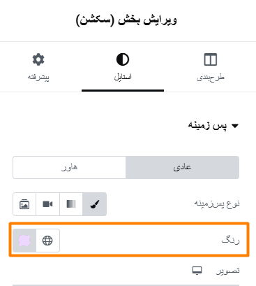 برای تغییر رنگ پس زمینه روی ویرایش بخش داخلی بزن و به تب استایل برو نوع پس زمینه رو کلاسیک و رنگش رو EDD7FF# انتخاب کن .