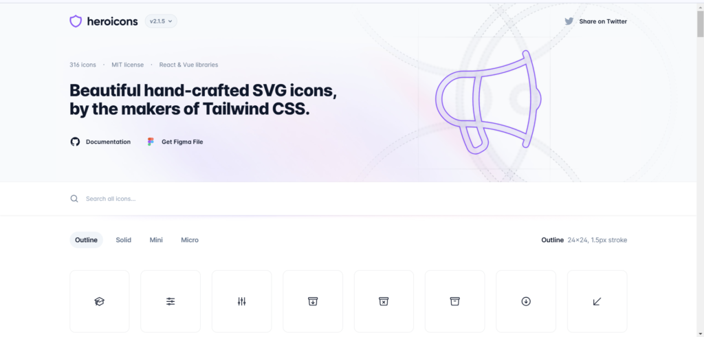 Heroicons یک مجموعه فوقالعاده از آیکونهای hand-crafted هست: