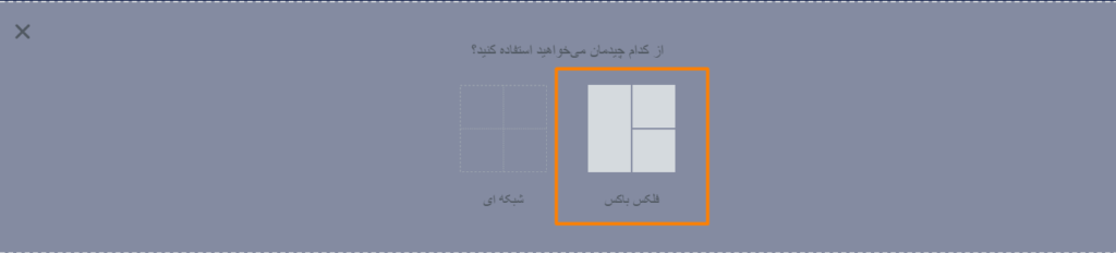 - وی نماد + در وسط صفحه کلیک کن، سپس چیدمان رو فلکس باکس انتخاب کن و جهت سطر را روی راست به چپ تنظیم کن 🙂