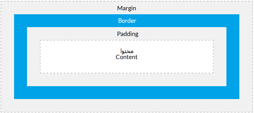 - مارجین (Margin): فاصله بیرونی جعبه با بقیه عناصر صفحه.
