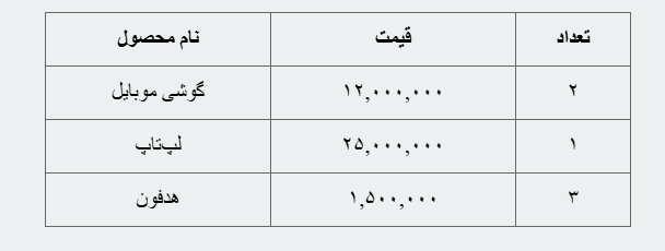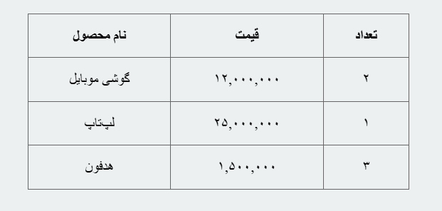 - عرض ثابت (پیکسلی): اگه بخوای جدولت یه اندازه مشخص داشته باشه، مثلاً: