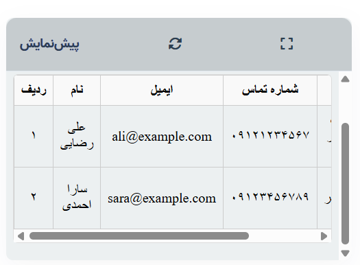 برای واکنشگرا کردن جدول (Responsive Table) به شکلی که در دستگاههای با صفحهنمایش کوچک (مثل موبایل) بهخوبی نمایش داده بشه و کاربر بتونه محتوای جدول رو بهصورت افقی اسکرول کنه، از یه تکنیک ساده استفاده میکنیم. جدول رو داخل یه تگ <div> میزاریم و به اون والد ویژگی overflow-x: auto; میدیم. اینطوری وقتی جدول بزرگتر از باکس بشه، نوار اسکرول افقی ظاهر میشه و کاربر میتونه به راحتی جدول رو جابهجا کنه.