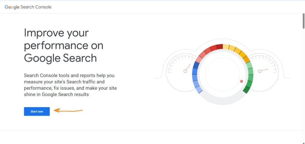 2. به آدرس اینترنتی سرچ کنسول به نشانی (https://search.google.com/search-console/about) برو. سپس بر روی start now کلیک کن.