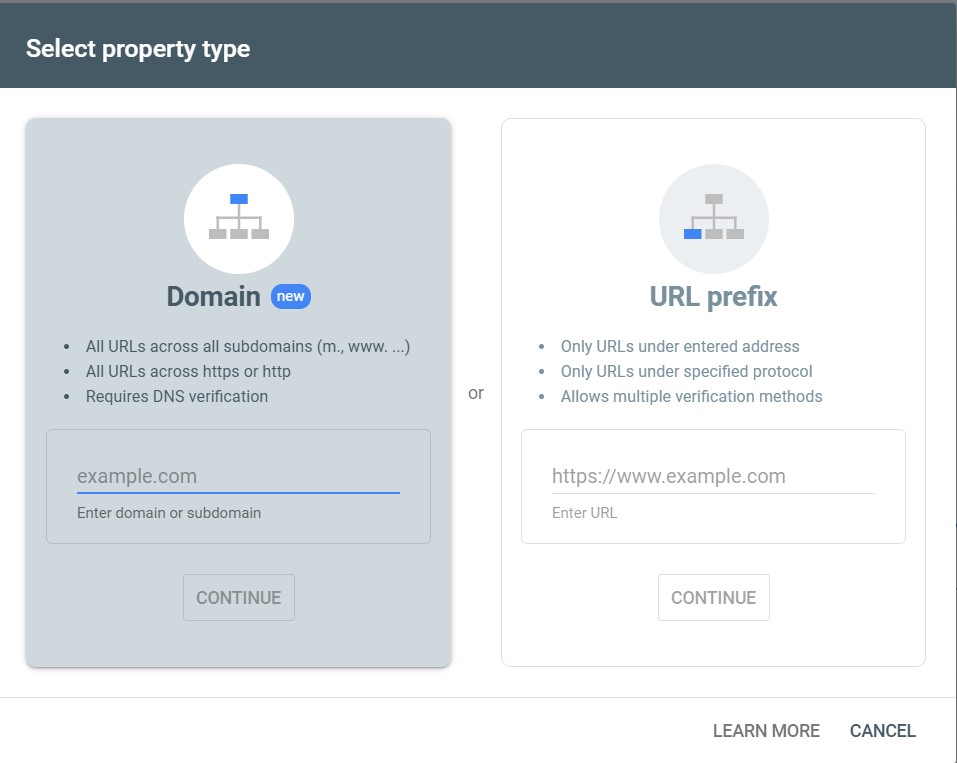 3. اینجا باید آدرس سایتت رو به گوگل معرفی کنی. دو تا راه برای این کار داری که هر کدوم مزایای خودشون رو دارن: