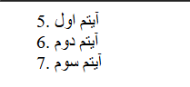 مثال: فرض کن یه لیست داری و میخوای شمارهگذاری از ۵ شروع بشه: