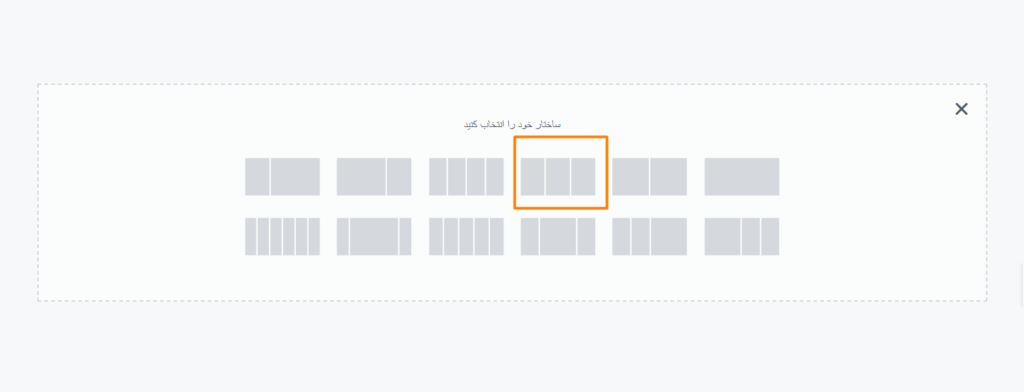 حالا در وسط صفحه روی نماد “+” بزن تا یه بخش جدید اضافه کنی. بعد از اون، از بین ساختارها، گزینه “سه ستونه” رو انتخاب کن تا بخش جدیدت به شکل سه ستونه ساخته بشه.
