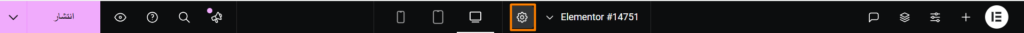 اولین قدم اینه که وارد پیشخوان وردپرس بشی و صفحهای که میخوای ستون رو بهش اضافه کنی باز کنی. بعد روی گزینه “ویرایش با المنتور” کلیک کن تا وارد محیط المنتور بشی. حالا وقتشه که یه رنگ پسزمینه تیره به صفحهات بدی تا ستون و افکتهای درخشانش بهتر به چشم بیان. 😎 برای این کار، ابتدا روی آیکون چرخ دنده در بالای ویرایشگر المنتور کلیک کن تا تنظیماتش باز بشه.