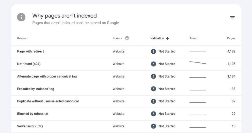 هر کدوم از این وضعیتها یه معنی خاص دارن و بسته به هدفت، باید براشون برنامهریزی کنی. مثلاً اگه یه صفحه مهم تو حالت Not indexed باشه، باید بفهمی چرا و دست به کار شی!